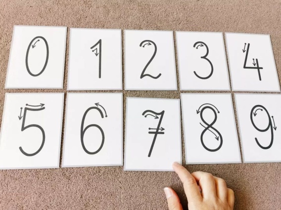 - Ćwiczenia grafomotoryczne – dziecko może rysować cyfry palcem po śladzie, co pomaga w nauce ich kształtu i kierunku pisania.