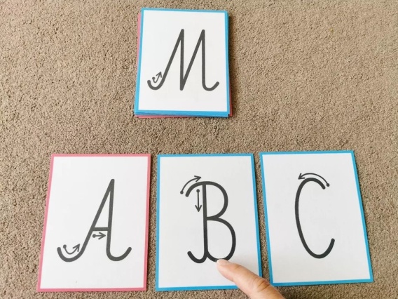 Zestaw składa się z 8 stron formatu A4 z łącznie 32 kartami zawierającymi wielkie litery pisane alfabetu polskiego – po 4 litery na każdej stronie. Każda litera została opatrzona strzałkami wskazującymi kierunek kreślenia, co ułatwia dziecku naukę pisania. Samogłoski oznaczono czerwoną ramką, a spółgłoski – niebieską, co wspomaga ich rozróżnianie i zapamiętywanie.
